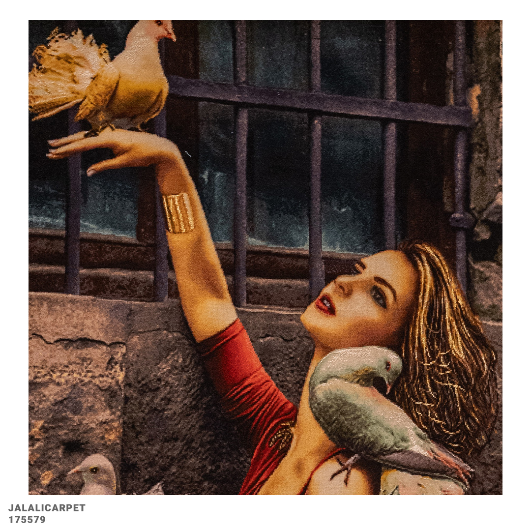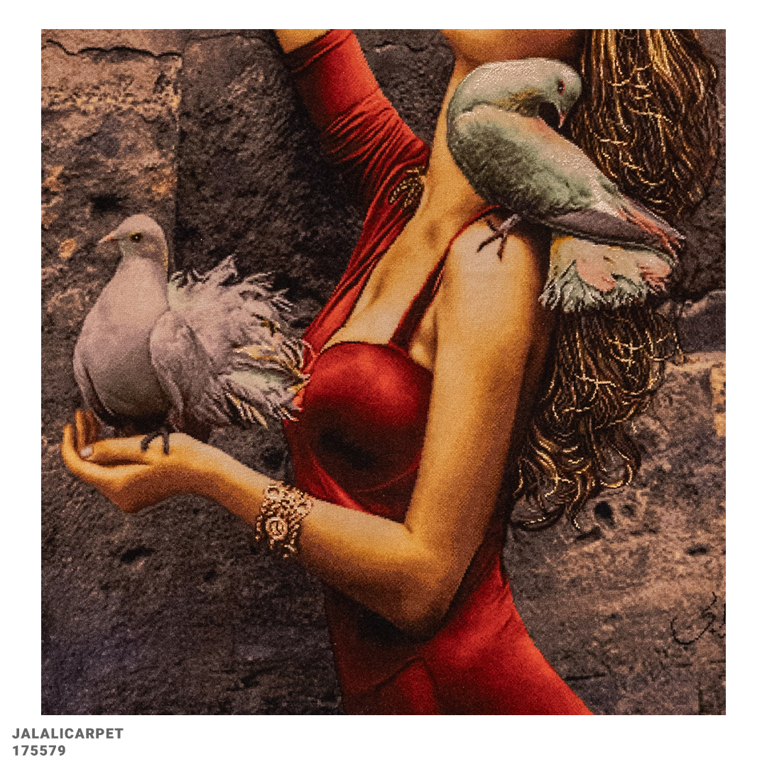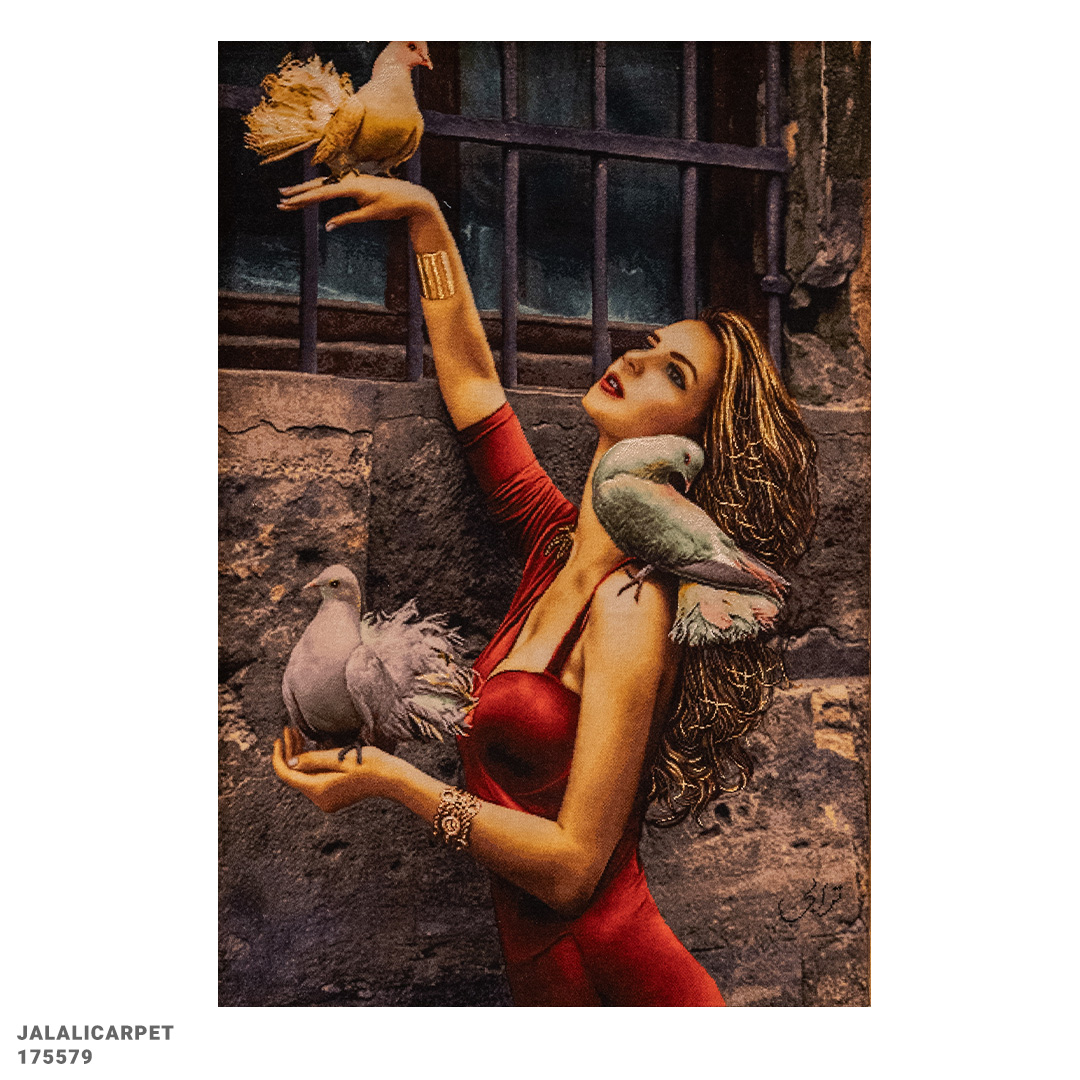 تابلوفرش دختر کفتر باز 50 رج - 175579