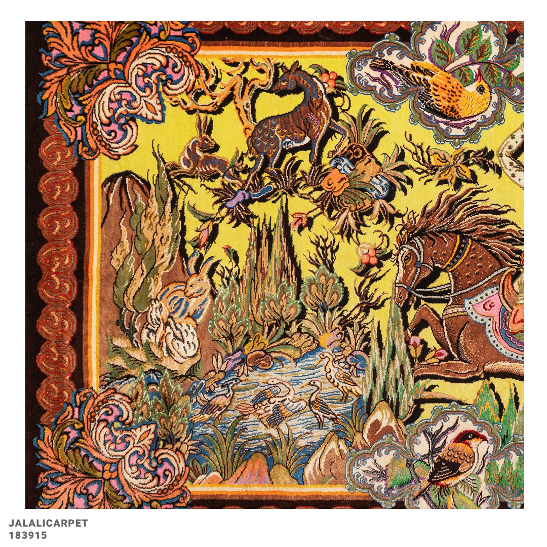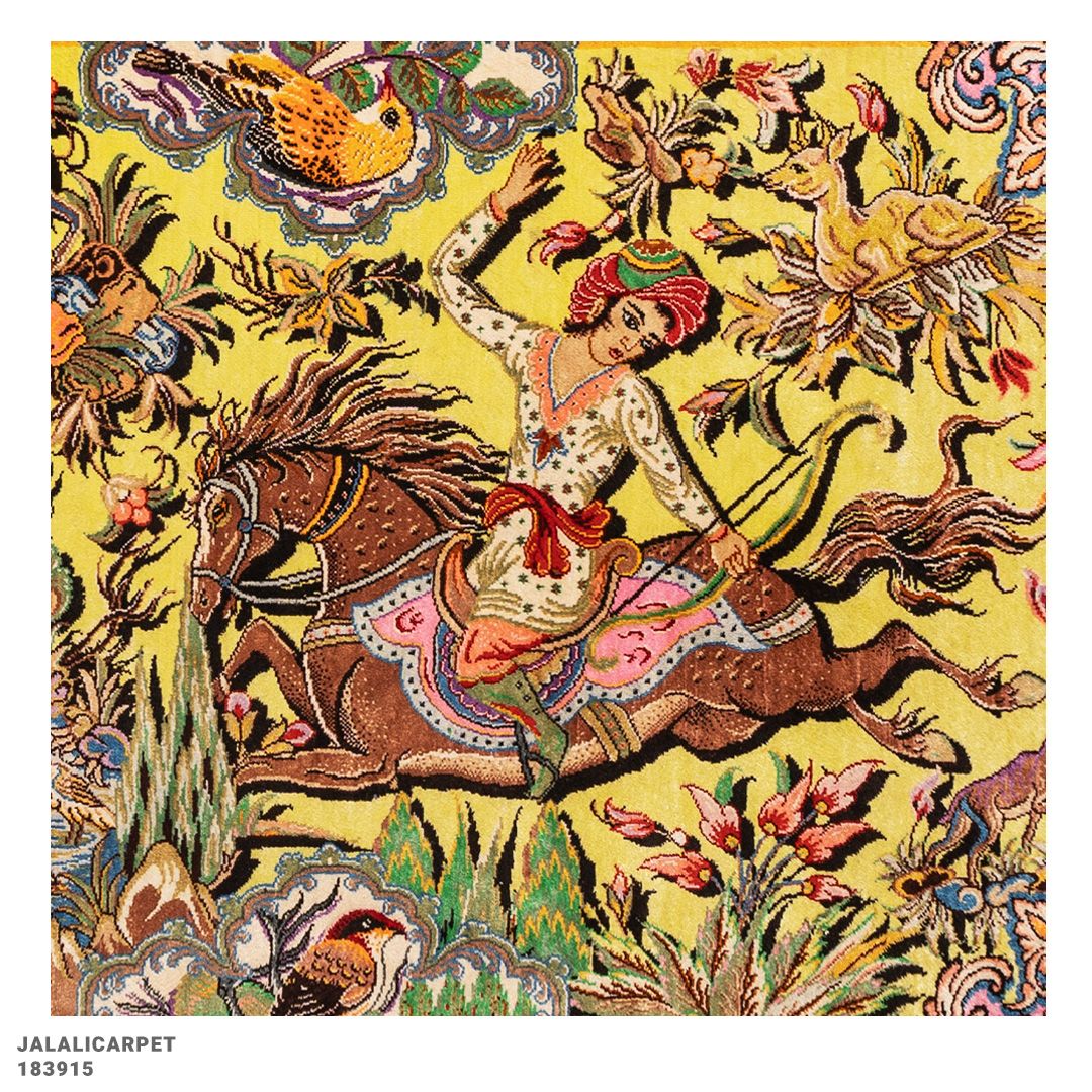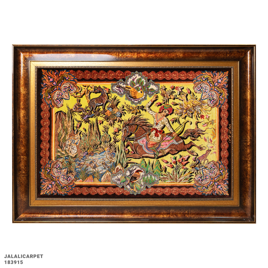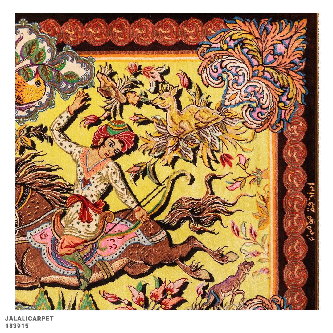 تابلوفرش تمام ابریشم 80 رج شکارگاه - 183915