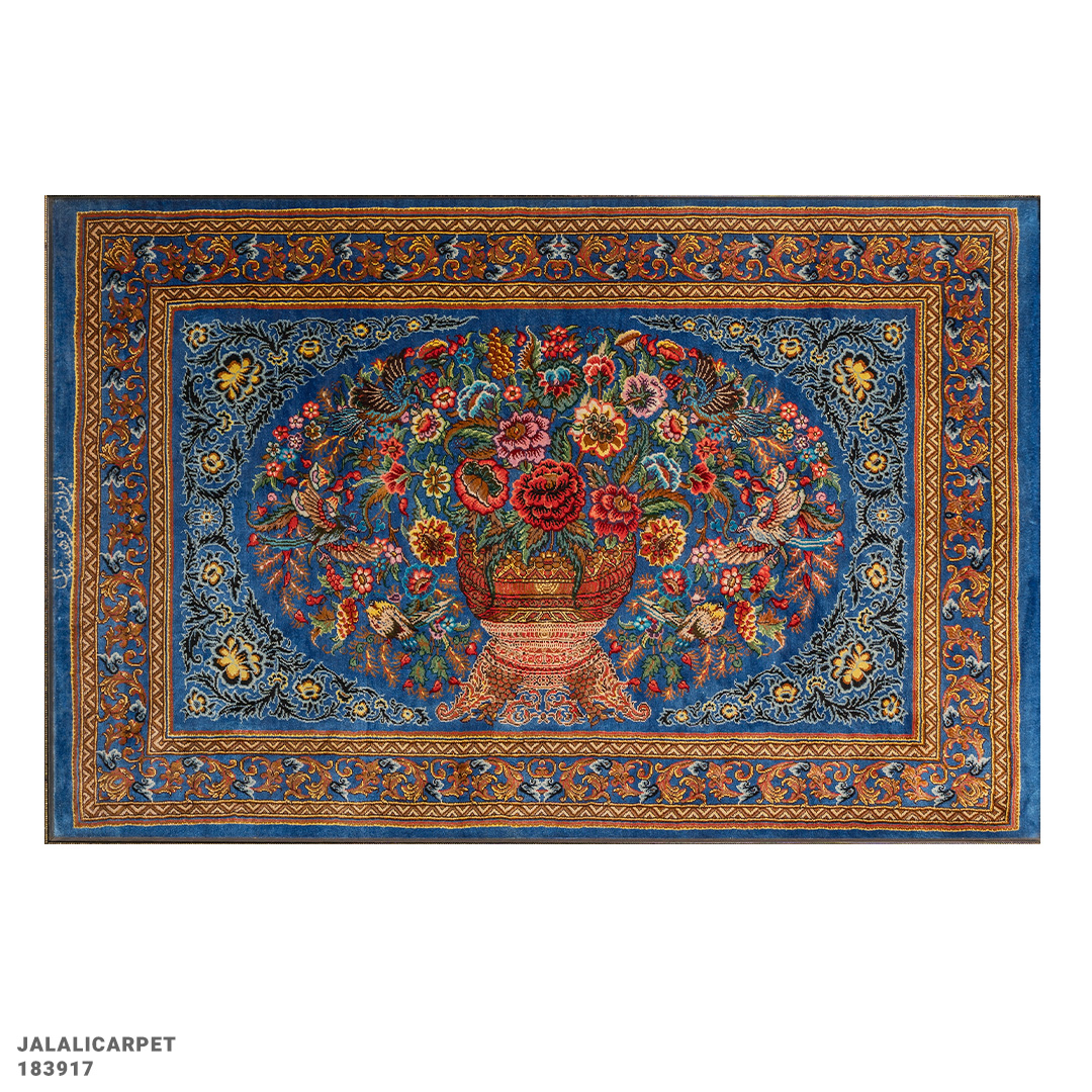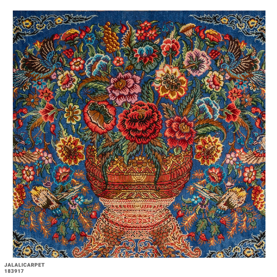 تابلوفرش تمام ابریشم 80 رج گلدانی - 183917