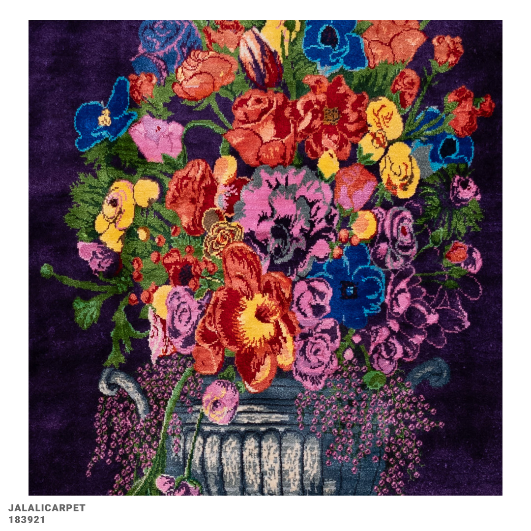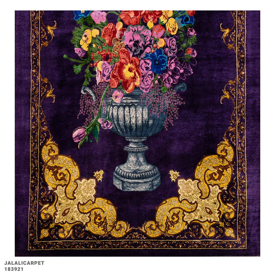 تابلوفرش تمام ابریشم گلدانی 80 رج