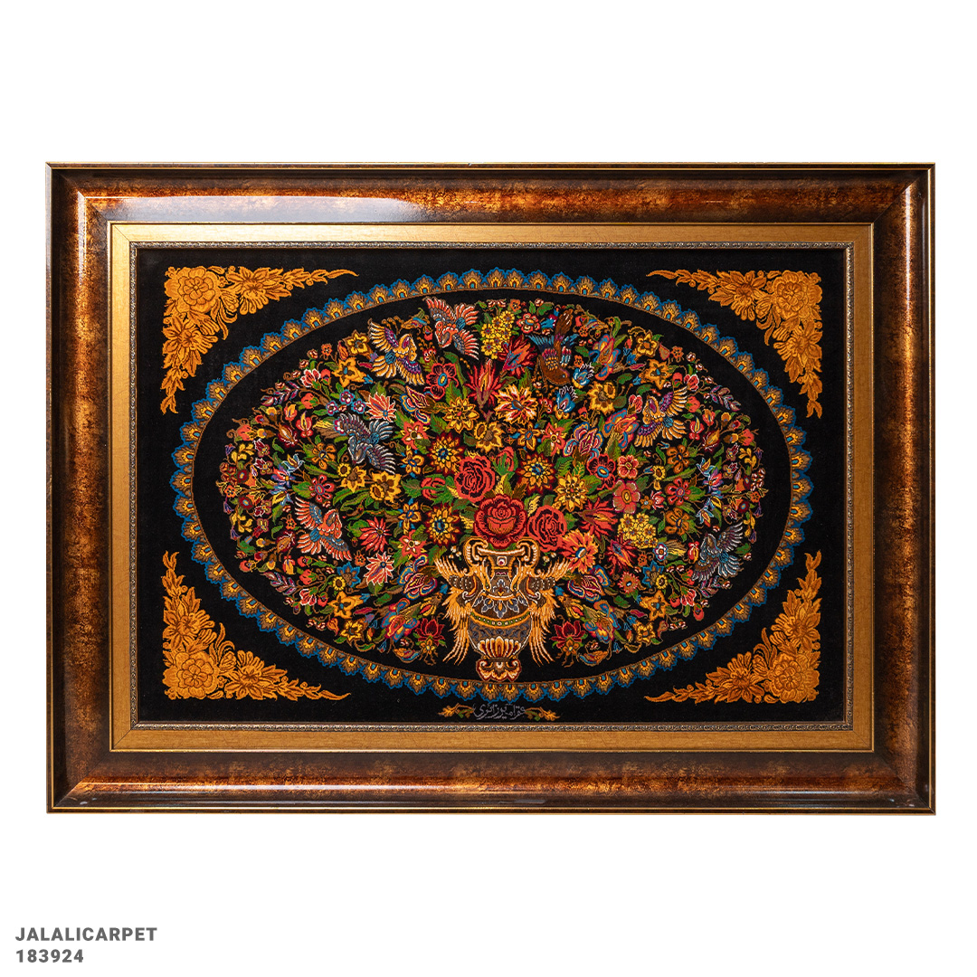 تابلوفرش تمام ابریشم 80 رج گلدانی