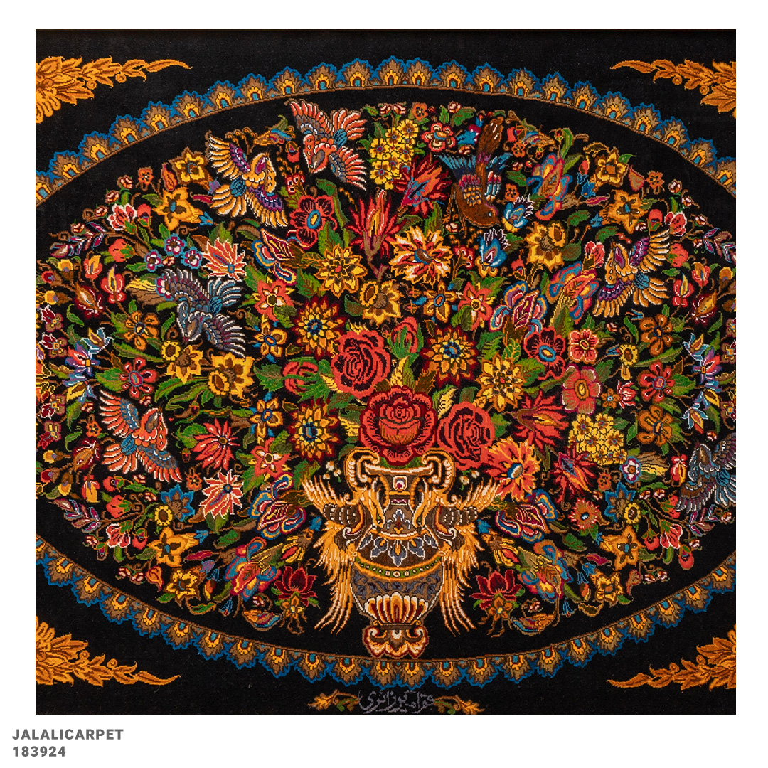 تابلوفرش تمام ابریشم 80 رج گلدانی - 183924
