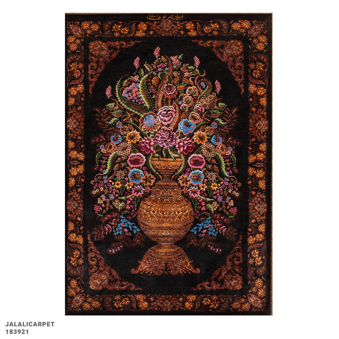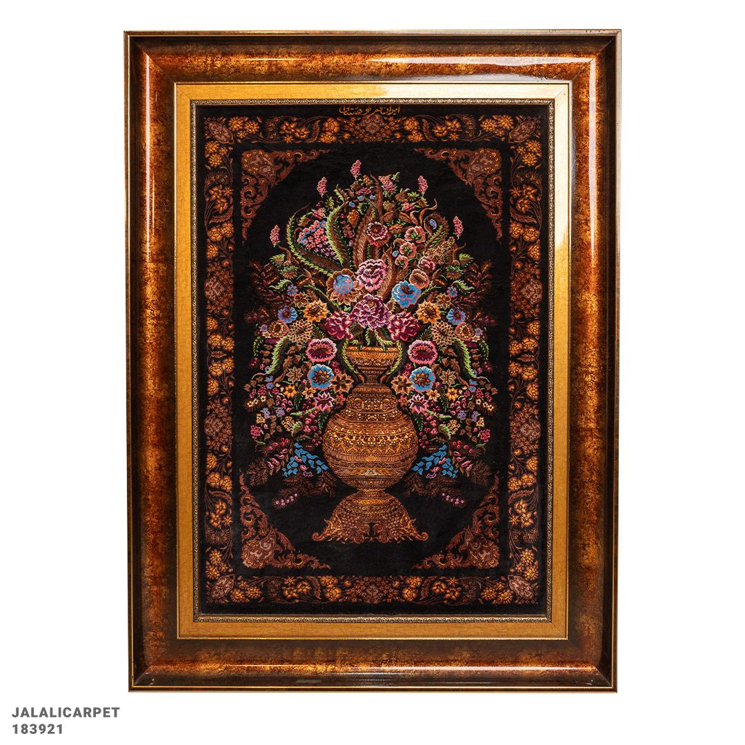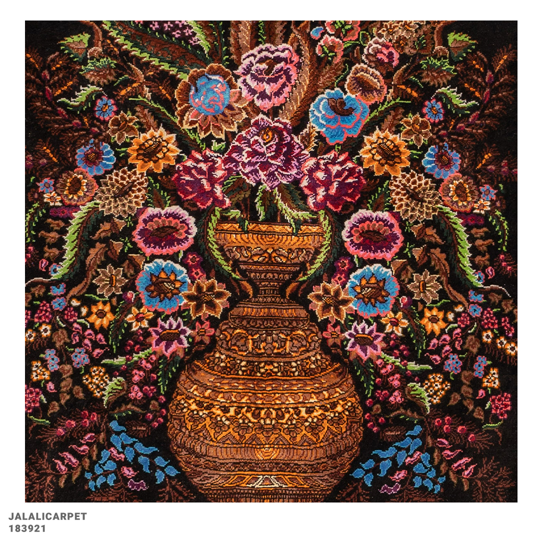 تابلوفرش تمام ابریشم 80 رج گلدانی - 183931