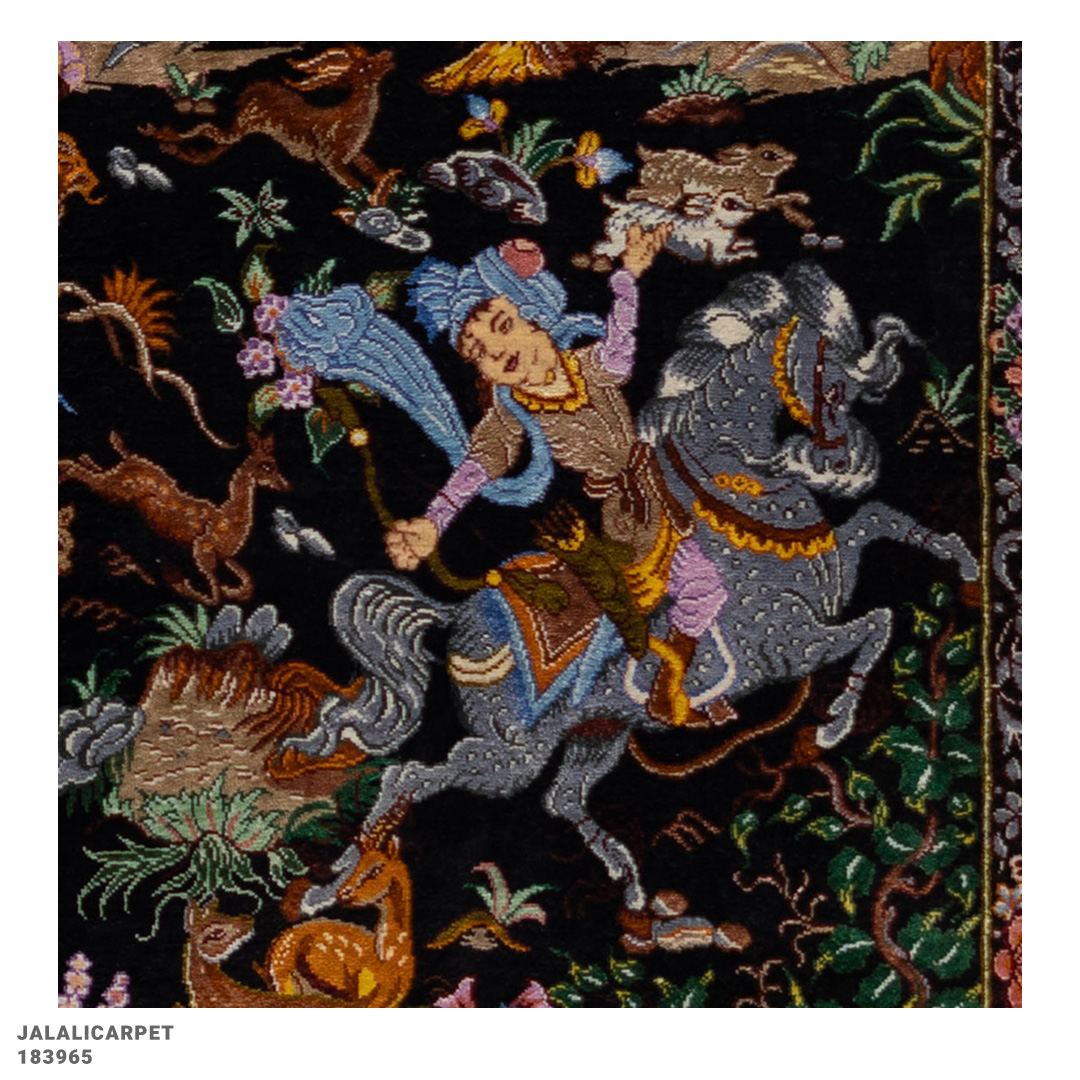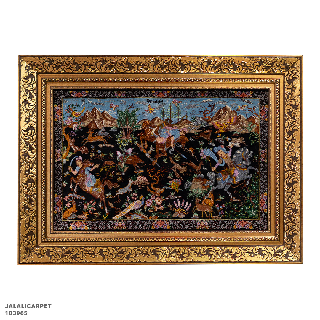 تابلوفرش تمام ابریشم شکارگاه 80 رج - 183965