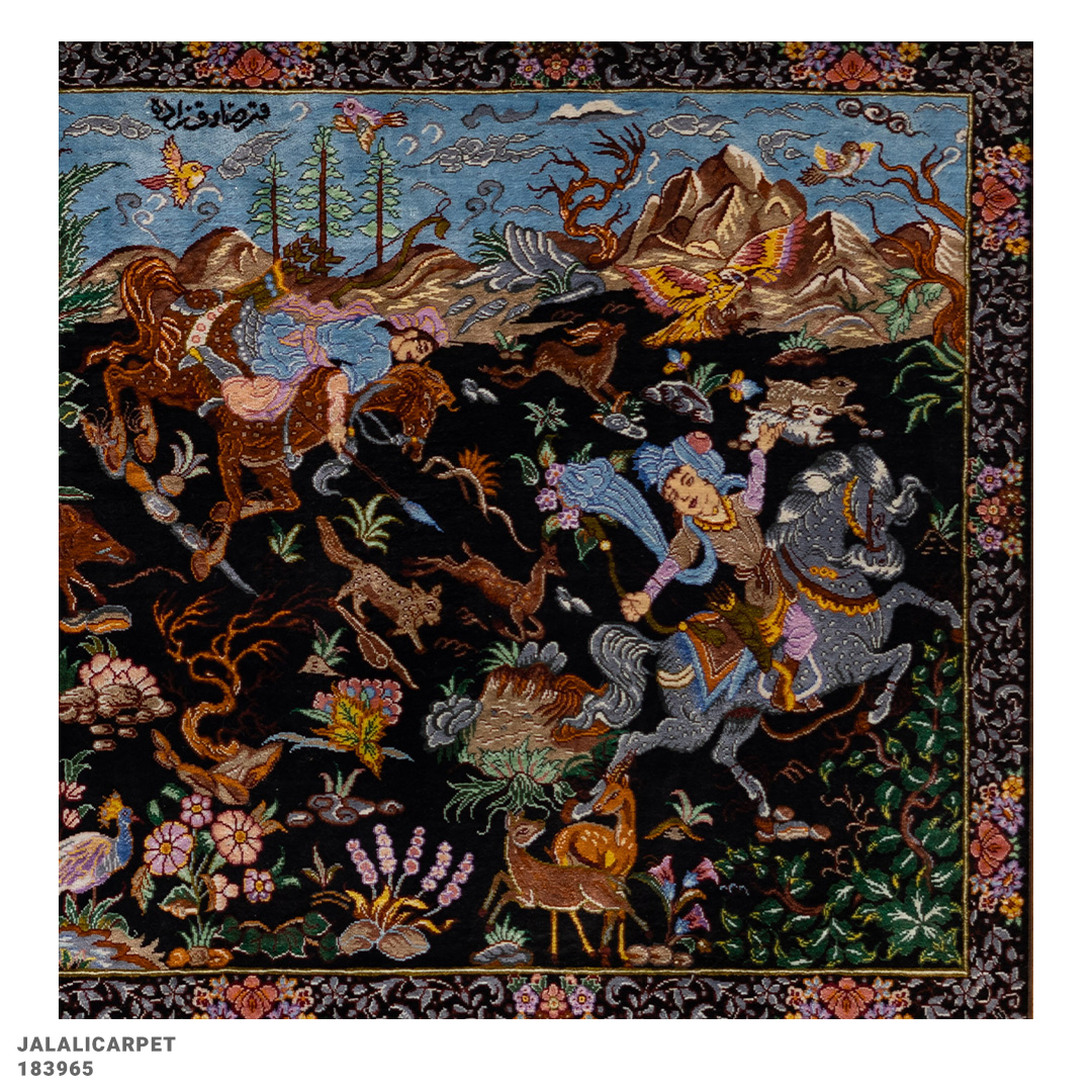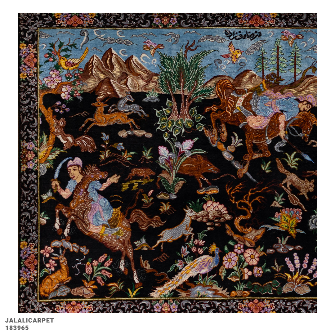 تابلوفرش تمام ابریشم شکارگاه 80 رج